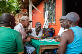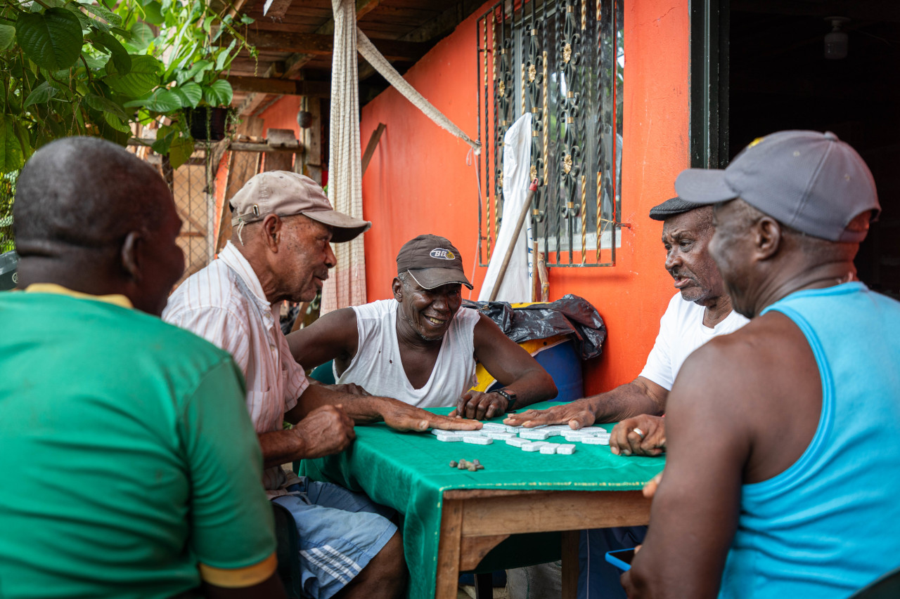 En el pueblo, es comun ver a los adultos pegando fichas.